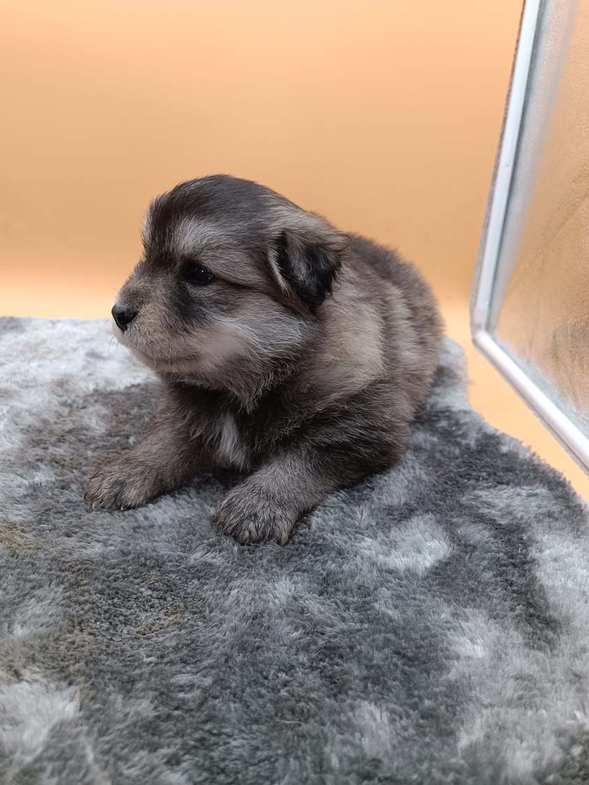 Pläne sind da um geändert zu werden. Da Hexe viel zu zeitig läufig geworden ist und ich keine Chance gehabt hätte mit den Welpen vom letzten Wurf noch hier in die Schweiz zu fahren, habe ich es riskiert mit Kiwi zum decken zu fahren. Vater des Wurfes wird der wunderbare Corry. Corry ist ein Rüde in der sehr seltenen Farbe rezessiv schwarz, auch Kiwis creme wird rezessiv vererbt, da die Besitzer von Corry eine große Genanalyse haben machen lassen, weiß ich dass er neben diesen schwarz auch braun und creme vererben kann. Und da auch Kiwis Gene bekannt sind, ergibt sich bei diesem Wurf die Möglichkeit auf 5 verschiedene Farben: creme, braun&tan, solid braun, black&tan sowie wie Papa Corry solid schwarz. Bei den beiden solid Varianten gibt es die Möglichkeit für die bei Lapphunden besondere Brillenzeichnung. Sprich die helle Ringe um die Augen.