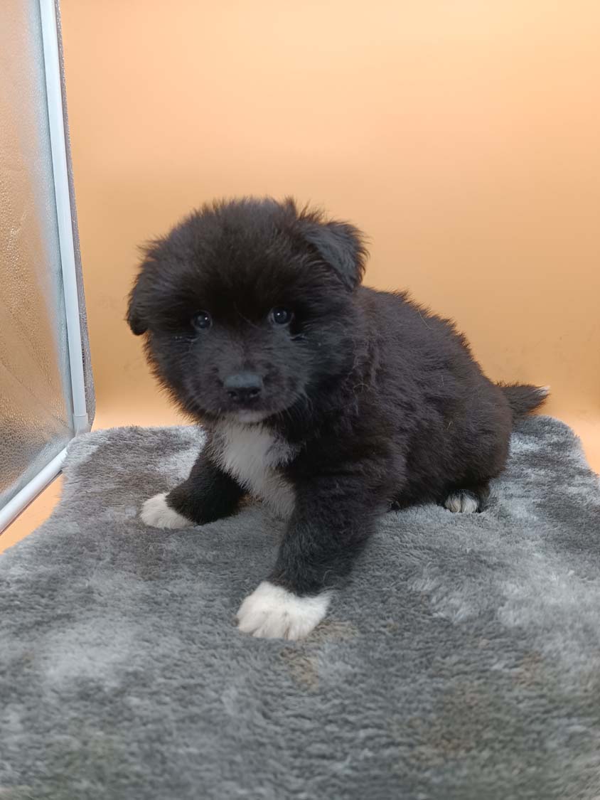Bei der 3. Hündin bin ich mir noch nicht sicher welche Farbe sie mal haben wird. Ich denke schwarz, die Besitzerin vom Deckrüden meint sie erkenne ganz dezente Tan-Abzeichen. Ich sehe sie nicht wirklich, ich könnte theoretisch einen Gen-Test machen, dauert etwa 4-5 Wochen, bis dahin vermute ich aber dass wenn es wirklich tan abzeichen sind, sie deutlicher werden. Diese Abzeichen bilden sich auch erst innerhalb des ersten Lebensjahres richtig aus.