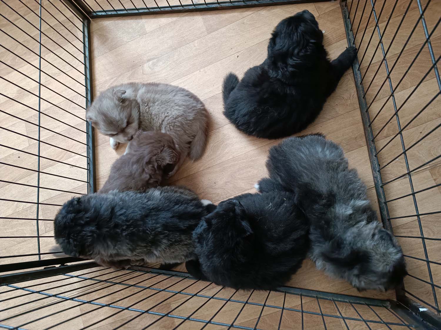 Minigefängnis... Hatte die Welpen gestern entwurmt, und der ein oder andere hat ein wenig Durchfall. Ich bin mir zu 99.9% sicher dass es von der Entwurmung kommt, aber da man nie was ausschließen kann, sind die Welpen heute mal für 30min in den Mini-Knist gewandert, weil ich mit etwas kräftigeren Desinfektionsmittel gereinigt habe. Da durften sie dann eine Dokumentation über Nessie im Fernseher verfolgen, dass sie aber für ziemlich einschläfernd hielten.
